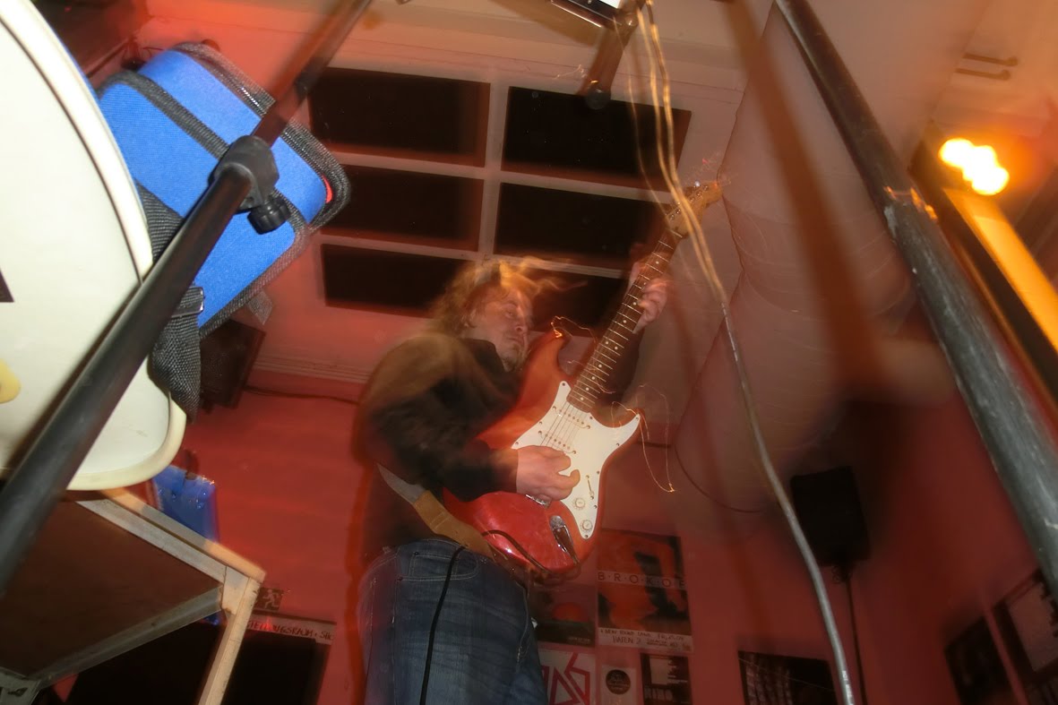 Spielen mussten wir trotzdem über die DJ Anlage, was für die Popgruppe Superstolk aber kein Problem darstellte - wenn man mal vom grottenschlechten Sound absieht...Aber seit wann sollte das ein Hinderungsgrund für eine Kultgruppe sein? Immerhin fand diesesmal keine brüllend laute Disco-Veranstaltung parallel im Nebenraum statt, wie bei unserem letzten Hafen2 Konzert, das erfüllt einen doch schon mit Dankbarkeit...